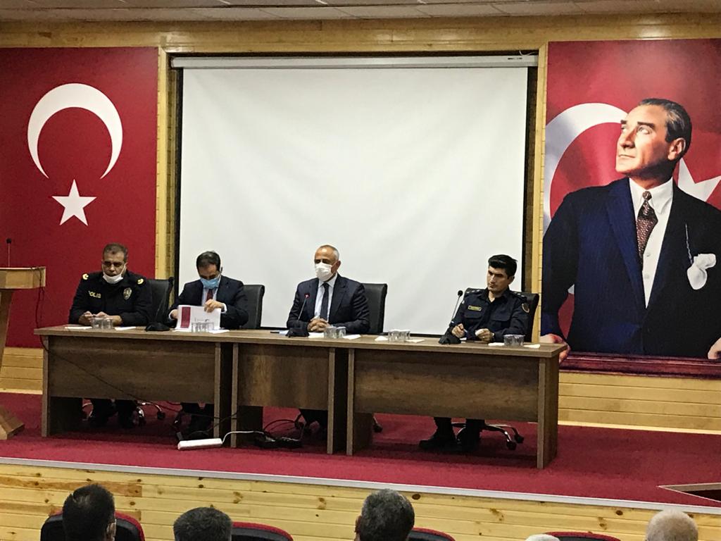 Kaymakamlık konferans salonunda düzenlenen toplantıya Türkoğlu Kaymakamı Mahmut HERSANLIOĞLU’nun yanı sıra Kahramanmaraş İl Göç İdaresi Müdürü Vekili Beytullah SAYGILI , İlçe Jandarma Komutanı Mustafa Kemal HAKVERDİ, ilçe Emniyet Müdürü Mehmet ÇİMEN ve mahalle muhtarları katıldı.