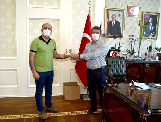 Ziyarette; Kazı çalışmaları hakkında fikir alışverişi yapıldı. Sonrasında ise, orijinalinin Kahramanmaraş müzesinde sergilendiği, M.Ö.5850 yılına ait çömlek parçası üzerindeki boya bezek, ok atan şaman ve hayat ağacı mülajını Belediye Başkanı Osman OKUMUŞ’a takdim ettiler.