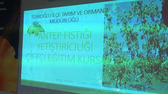 Antep Fıstığı Yetiştiriciliği Kursu Türkoğlu İlçe Tarım ve Orman Müdürlüğü ve Halk Eğitim Merkez Müdürlüğü personellerince ortaklaşa gerçekleştirilmektedir.