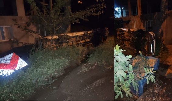 Alınan bilgilere göre ilçeye bağlı Yeşilyöre mahallesinden geçen grup yol üzerinde bahçe suları ile kayganlaşan yolda sürücüsü ve plakası öğrenilemeyen minibüs virajda yoldan çıkarak şarampole devrildi. Kazada herhangi bir yaralanma olmazken araçta maddi hasar meydana geldi.