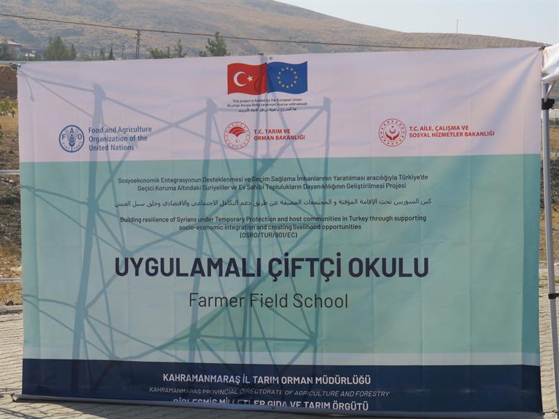 Avrupa Birliği (AB) MADAD fonlu, FAO teknik destekli, Bakanlık ve ilgili diğer kurumlar ile işbirliği içerisinde “Sosyoekonomik Entegrasyonun Desteklenmesi ve Geçim Sağlama imkanlarının Yaratılması aracılığıyla Türkiyede Geçici Koruma Altındaki Suriyeliler Ev Sahibi Toplulukların Dayanıklılığının Geliştirilmesi” projesi kapsamındaki Uygulamalı Çiftçi Okulu (UÇO) faaliyeti başlığı altında toplamda 150 üreticinin eğitim alması sağlanacak.