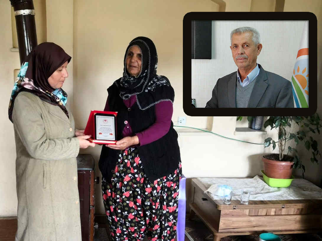 Türkoğlu ilçesine bağlı Çakıroğlu mahallesinde yaşayan Fadıma Kamalak’a geçtiğimiz yıl eylül ayında beyin kanamasına bağlı olarak vefat eden eşi Abdullah Kamalak adına teşekkür plaketi verildi. Kahramanmaraş Tarım ve Orman İl Müdürü Mustafa Bozkurt tarafından verilen plakette “Sayın Fadıma Kamalak, Sizin şahsınızda rahmetli eşiniz Abdulah Kamalak’a önder çiftçi olarak başta çilek yetiştiriciliği olmak üzere tarımsal yeniliklerin yaygınlaştırılmasına yönelik çalışmalardan dolayı teşekkür ederiz.” ifadelerine yer verildi.