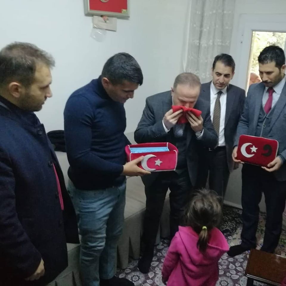 Bu kapsamda ilk ziyaretini Kaymakam Gürbüz SALTAŞ’ın katılımıyla Şehit Mehmet TAŞHAN ‘in evi ziyaret edilerek yasin-i şerif okundu. Ziyaret sonunda şehdtin kardeşine Kur-an Kerim ve Türk Bayrağı takdim edildi. Ziyarete Kaymakam Gürbüz SALTAŞ, Türkoğlu Halk Eğitim Müdürü Mehmet KILLI ve kuran öğrenen kursiyerler katıldı.