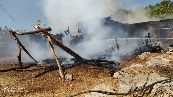 Evde bulunan beş küçükbaş hayvanın telef olduğu yangınla ilgili soruşturma devam ediyor.