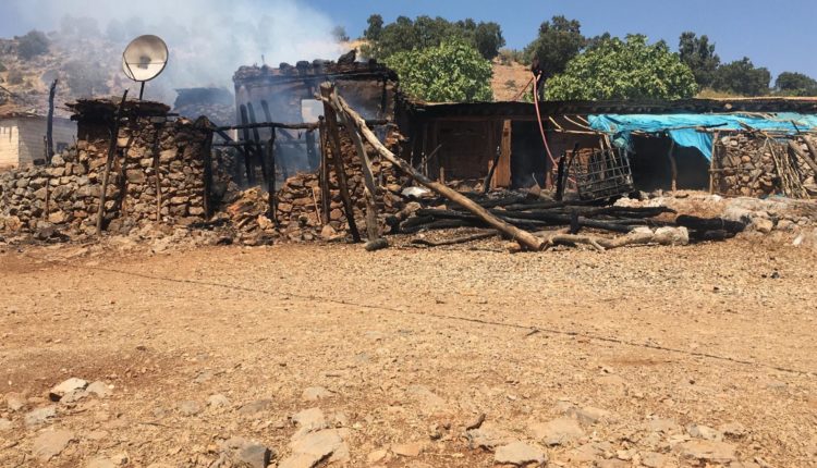 Kahramanmaraş’ın Türkoğlu ilçesinde yangın sebebiyle bir ev kullanılamaz hale gelirken evdeki küçük baş hayvanlar telef oldu.
