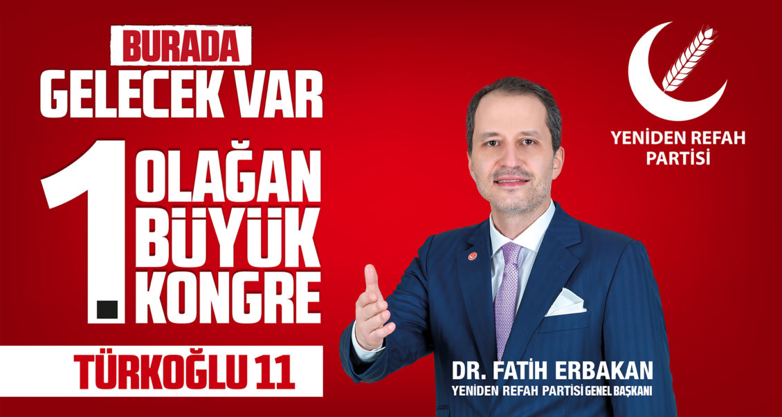 Yeniden Refah Partisi 1. Olağan Büyük Kongresi 17 Kasım 2019 Pazar Saat: 09.00’da Ankara (Arena) Spor Salonunda yapılacak. Kurultaya gitmek isteyenler 05466873694 nolu telefonu arayabilirler.